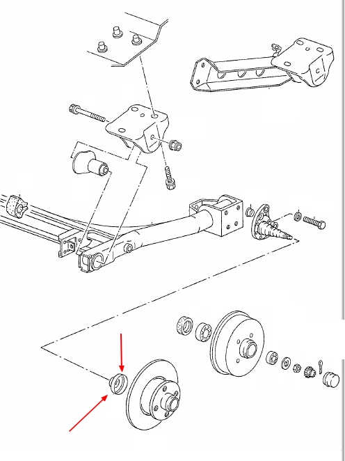 Inbouwplaats achteras links en rechts