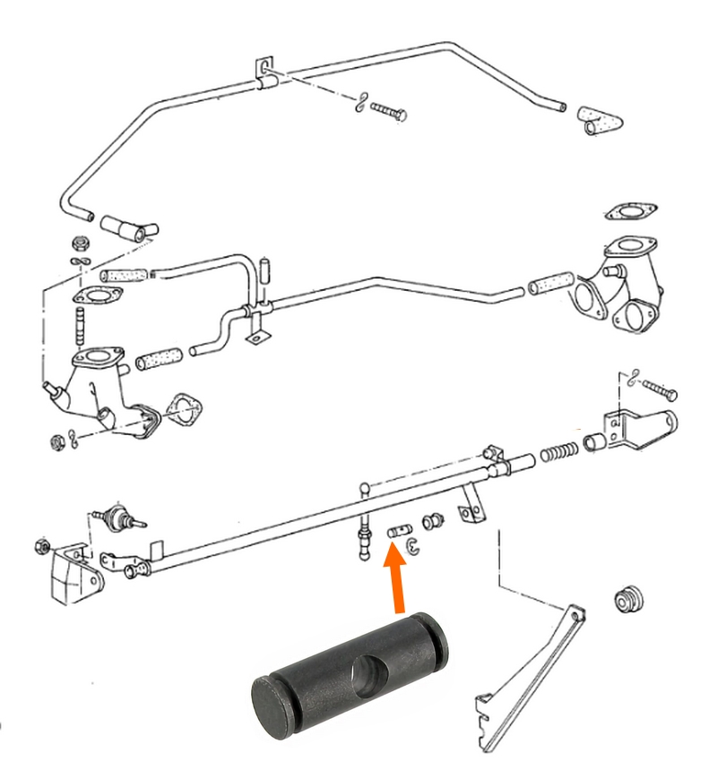 Deze nippel wordt ook gebruikt bij de T3 (T25) Bus met Type-4 motor en carburateurs voor de montage van de gaskabel.