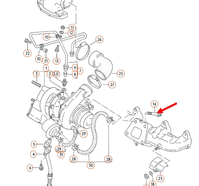 | English description: | Turbocharger mounting screw, long |